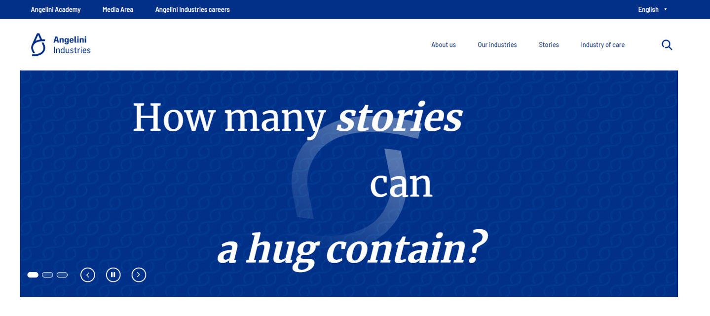 "How many stories can a hug contain?" News, stories and renewed graphic design for Angelini Industries' new website