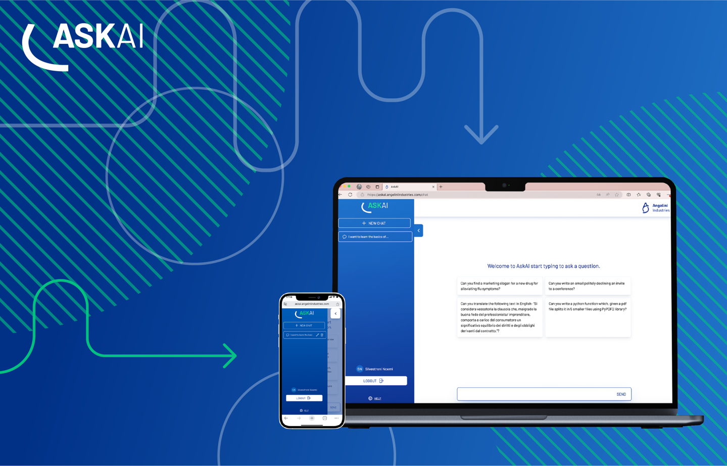 AskAI è una soluzione basata sui modelli di OpenAI disponibili attraverso la piattaforma Microsoft Azure, nello specifico GPT 3.5-turbo, e che si traduce concretamente in una web app utilizzabile sia da desktop sia da dispositivi mobili che attualmente può supportare i dipendenti del gruppo nella redazione di contenuti, testi e traduzioni. Già a disposizione per tutte le funzioni come applicazione di produttività personale, in una seconda fase Angelini Industries insieme a Microsoft procederà con lo sviluppo di soluzioni verticali specifiche, per supportare, per esempio, i team legal e HR rispettivamente nella realizzazione, analisi, ricerca di contratti e brevetti e nel matching tra posizioni aperte e profili professionali, e gli informatori medico-scientifici in ambito farmaceutico per attività di formazione. L’Intelligenza Artificiale generativa sarà presto utilizzata anche per affiancare il team del supporto tecnico al cliente per velocizzare le attività e le risoluzioni di problemi di funzionamento dei macchinari per il settore dei prodotti igienici assorbenti e dei beni di largo consumo per la cura della casa e della persona prodotti da Angelini Technologies, la divisione di Angelini Industries che opera nel campo della tecnologia industriale.