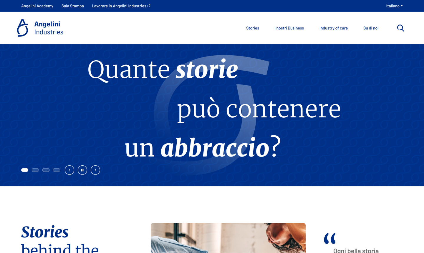 “Quante storie può contenere un abbraccio?” News, storie e rinnovata veste grafica per il nuovo sito di Angelini Industries