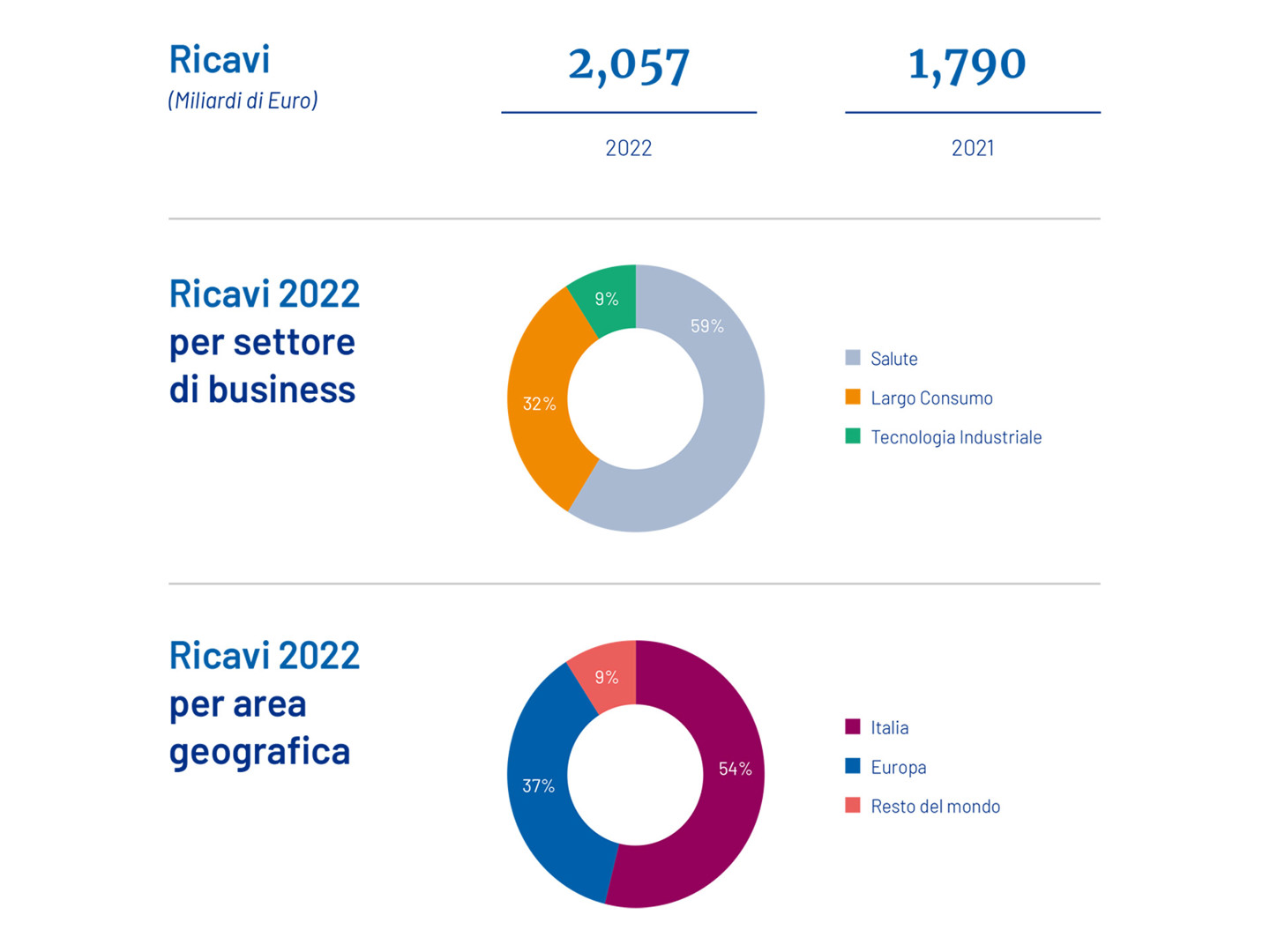 Il 2022 è stato un anno di svolta per Angelini Industries. Un anno in cui la strategia di investimenti ha iniziato a plasmare il profilo che il Gruppo avrà nel prossimo futuro: una robusta presenza nel settore della salute, con un forte focus sul sistema nervoso centrale e un portafoglio organico nella consumer healthcare, un’espansione sempre maggiore nell’area della tecnologia industriale, dove l’Italia sa esprimere eccellenze assolute a livello mondiale, un presidio importante nel settore dei beni di largo consumo a conferire solidità al Gruppo.