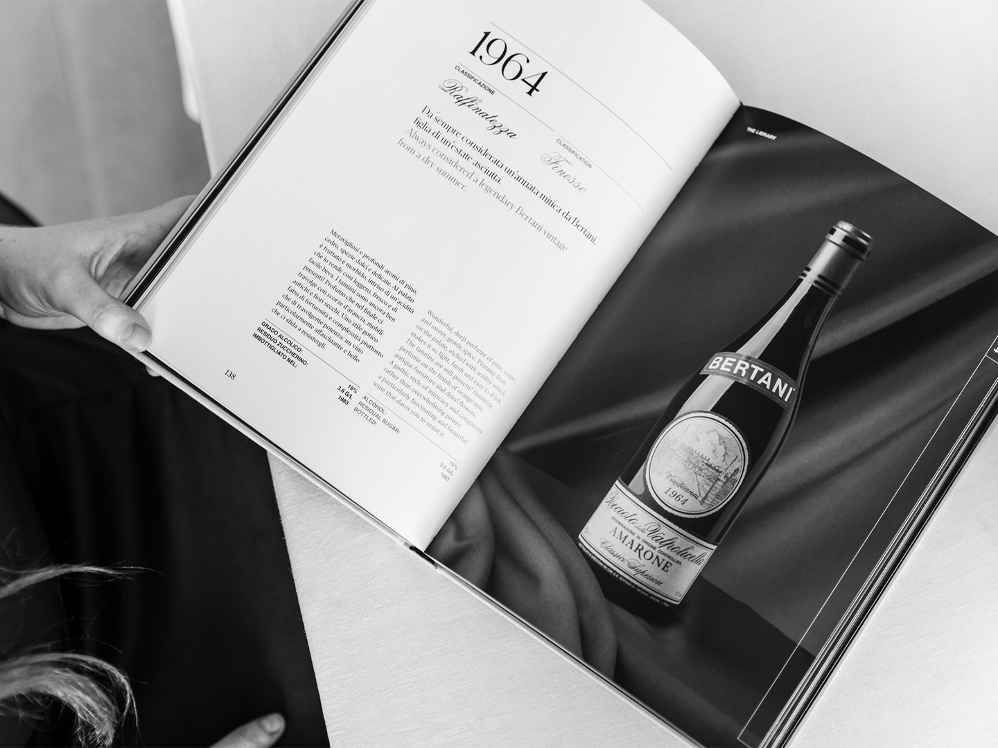 Attraverso The Library si possono leggere e raccontare storie di dedizione, passione, di tradizione e sperimentazione. È un volume che simboleggia il know-how, la filosofia di cura e rispetto del territorio e la cifra stilistica che hanno contraddistinto Bertani nel corso del tempo.