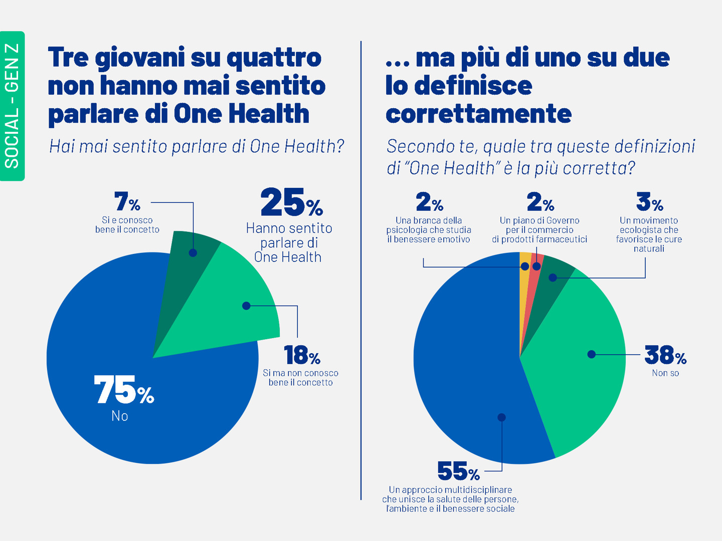 Questo aspetto introduce al concetto di “One Health”, ovvero l’approccio che unisce diverse discipline e considera come correlate la salute delle persone, la tutela dell’ambiente e il benessere sociale. Sebbene la maggior parte degli under 30 non conoscesse il significato del termine, oltre il 54% di loro ne ha indicato la definizione corretta tra quelle proposte nel sondaggio.